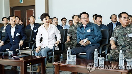 Tổng thống Hàn Quốc Park Geun-hye đã tới khu thử tên lửa Anheung ở tây nam Hàn Quốc để trực tiếp thị sát cuộc thử tên lửa lần này.
