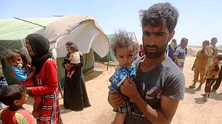 | Người dân thành phố Ra-ma-đi tại một trại sơ tán ở phía tây thủ đô Bát-đa. |