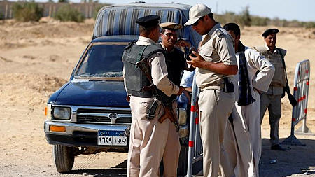 | Cảnh sát Ai Cập canh gác gần địa điểm diễn ra vụ khủng bố làm hơn 50 người thương vong hôm 26-5. (Ảnh: Reuters). |