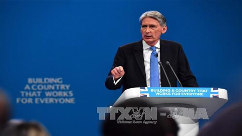 | Bộ trưởng Tài chính Anh Philip Hammond phát biểu với các lãnh đạo doanh nghiệp Anh bên lề Diễn đàn Kinh tế Davos ngày 25/1. Ảnh: AFP/TTXVN |