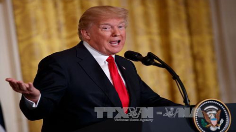 | Tổng thống Mỹ Donald Trump trong cuộc họp báo tại Washington DC. Ảnh: THX/TTXVN |