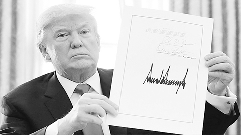 | Tổng thống Mỹ Ð.Trăm và bản cải cách thuế. Ảnh: Reuters |