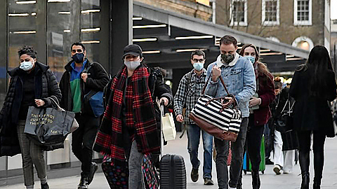 | Người dân ở thủ đô Luân Ðôn của Anh đeo khẩu trang ngừa dịch Covid-19. Ảnh ROI-TƠ |