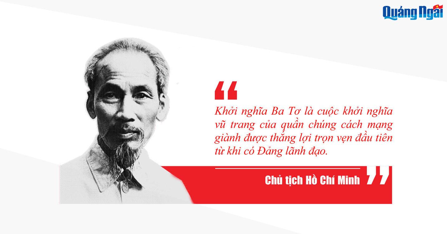 Chủ tịch Hồ Chí Minh, Trung ương Đảng đều đánh giá rất cao thắng lợi của Khởi nghĩa Ba Tơ, coi đó là một điển hình tiên phong táo bạo, một bài học kinh nghiệm lớn về chiến tranh nhân dân. Nhắc đến Khởi nghĩa Ba Tơ, Chủ tịch Hồ Chí Minh nhấn mạnh: “Khởi nghĩa Ba Tơ là cuộc khởi nghĩa vũ trang của quần chúng cách mạng giành được thắng lợi trọn vẹn đầu tiên từ khi có Đảng lãnh đạo”.