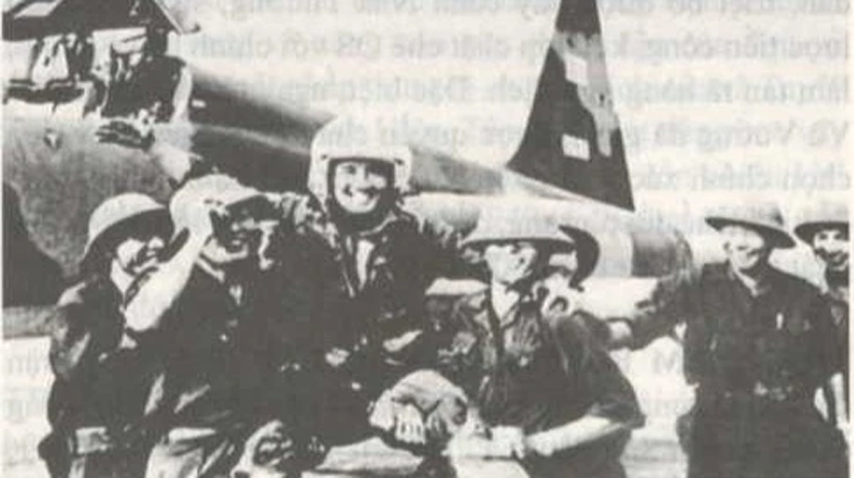 | Phi công Nguyễn Thành Trung lái máy bay F-5E hạ cánh tại sân bay Phước Long. (Ảnh: TTXVN) |