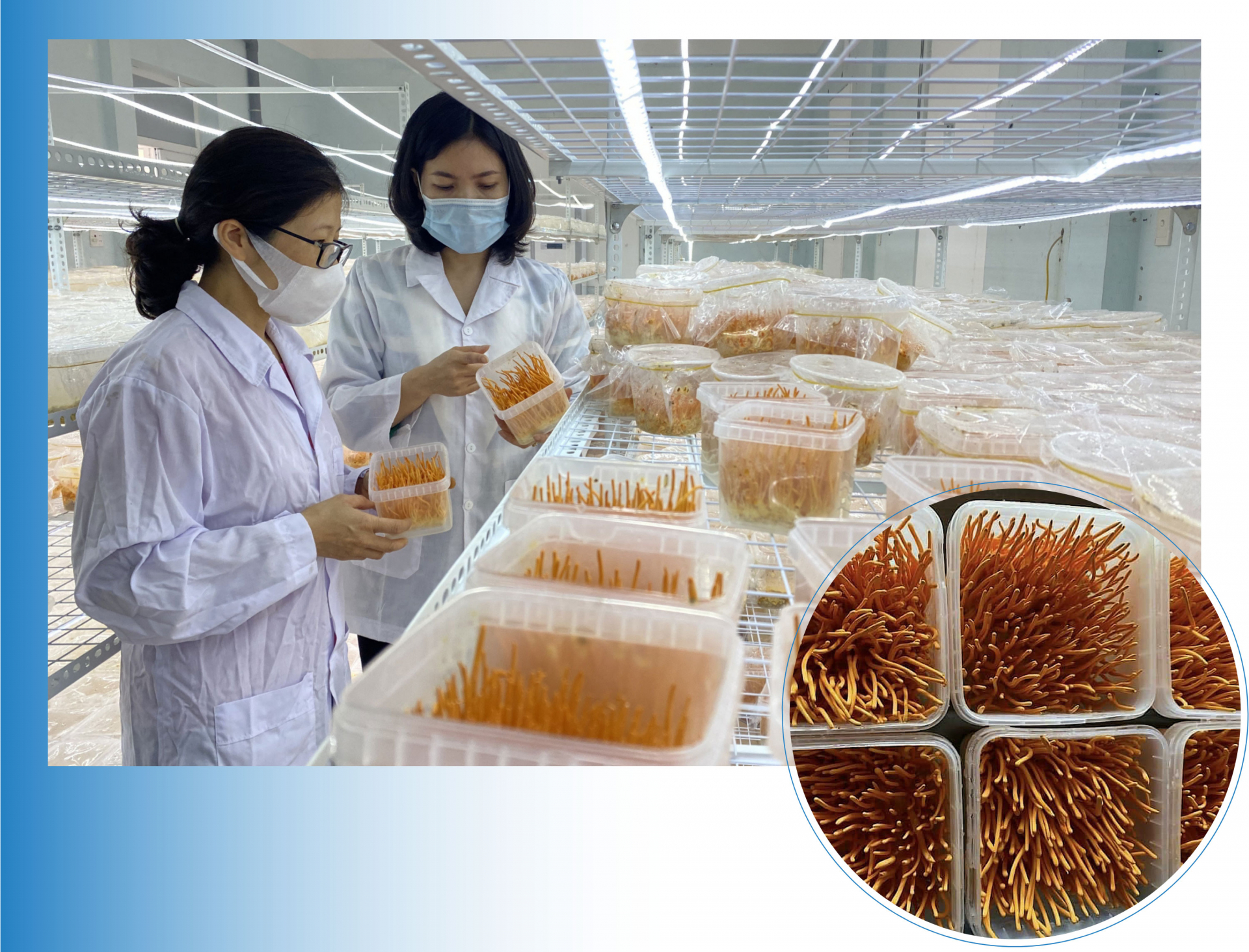 | Sản xuất nấm đông trùng hạ thảo tại Trung tâm Ứng dụng, dịch vụ Khoa học và Công nghệ. |