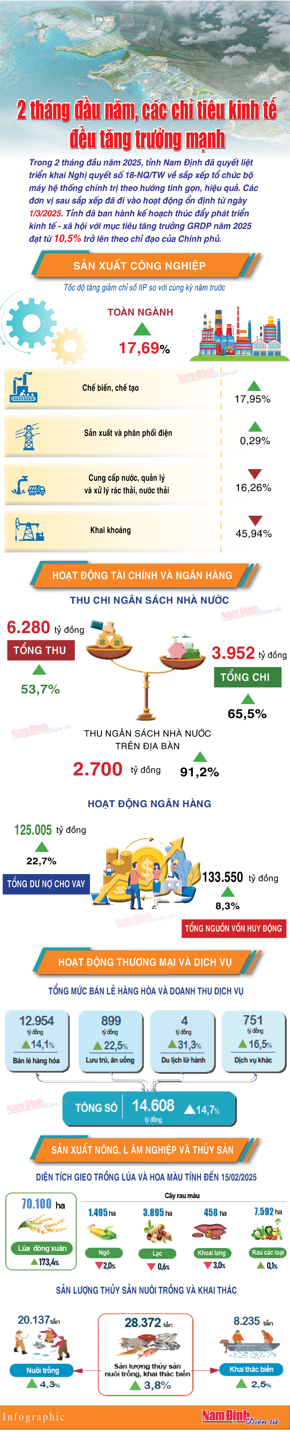 2 tháng đầu năm, các chỉ tiêu kinh tế đều tăng trưởng mạnh