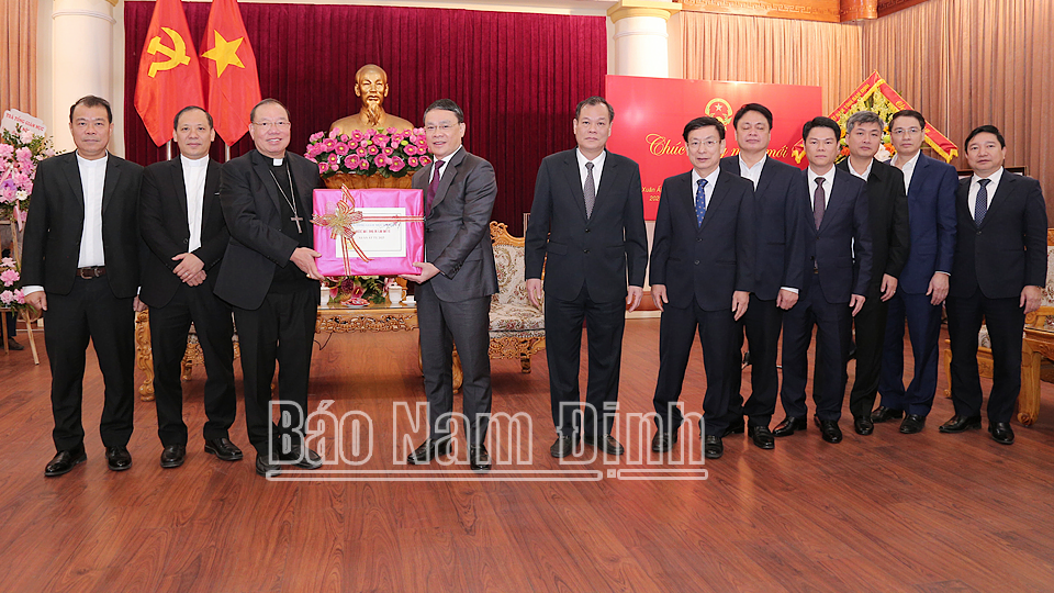 Nhân dịp đón năm mới Xuân Ất Tỵ 2025, đồng chí Bí thư Tỉnh ủy Đặng Khánh Toàn chúc Đức Tổng Giám mục và đồng bào Công giáo bước sang năm mới sức khỏe, an khang, thịnh vượng. Đồng chí Bí thư Tỉnh ủy khẳng định tỉnh Nam Định luôn ủng hộ và tạo điều kiện thuận lợi cho các hoạt động tôn giáo trong điều kiện và theo quy định pháp luật; đồng thời mong muốn Đức Tổng Giám mục và các cha xứ tiếp tục quan tâm vận động giáo dân tổ chức tốt các hoạt động tôn giáo, tích cực tham gia các phong trào xây dựng quê hương, đất nước theo phương châm “tốt đời, đẹp đạo”.